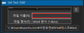 Set Text 이용시 아래와 같이 한글, 영문이 정확히 입력됩니다.