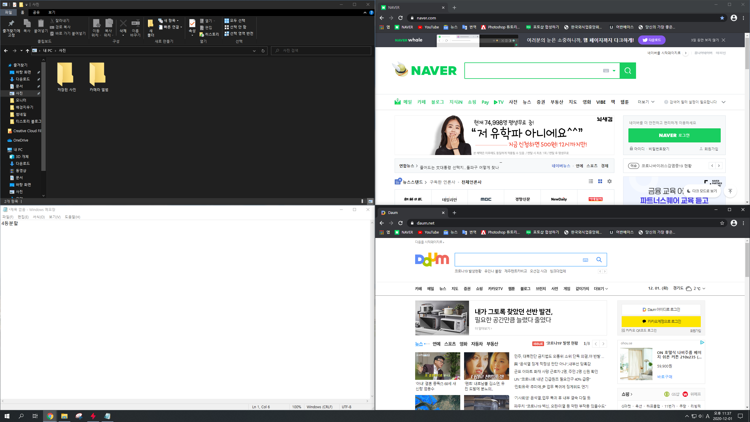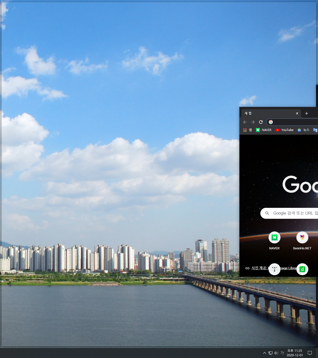 1. [윈도우 + 좌(←) 방향키] , [윈도우 + 우(→) 방향키] 입력시 화면이 절반으로 바뀌게 됩니다.