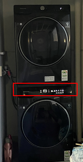 세탁기와 건조기는 타워형으로 설치가능하였고 세탁기 조절 버튼에서 건조기까지 선택하여 조절이 가능하였습니다.