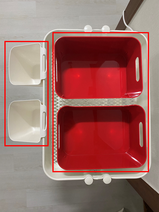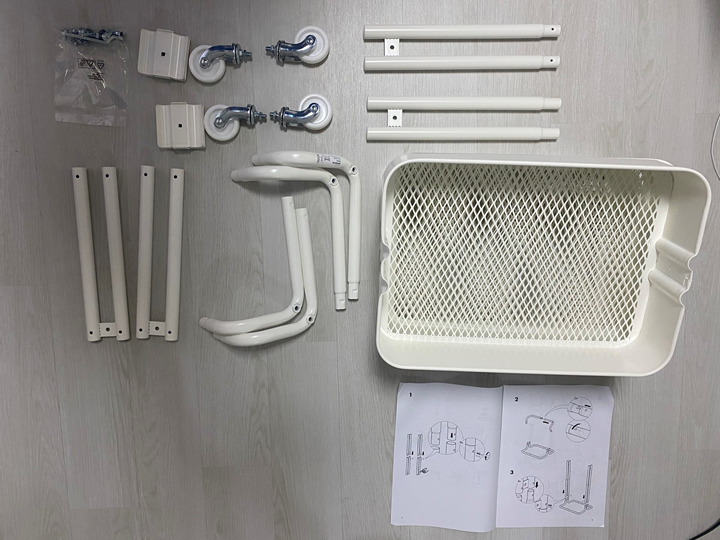 - 바퀴가 흰색이라 때가 잘탈 것 같고, 이동된 형태에서 고정이 안되는 점은 아쉬웠습니다.