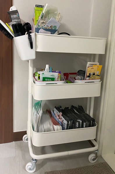 저는 화장실 옆 공간에 마스크와 약품, 상단에 드라이기랑 빗을 두고 사용하고 있는데 정리도 편하고 주방쪽에도 하나더 사서 둘 생각입니다.