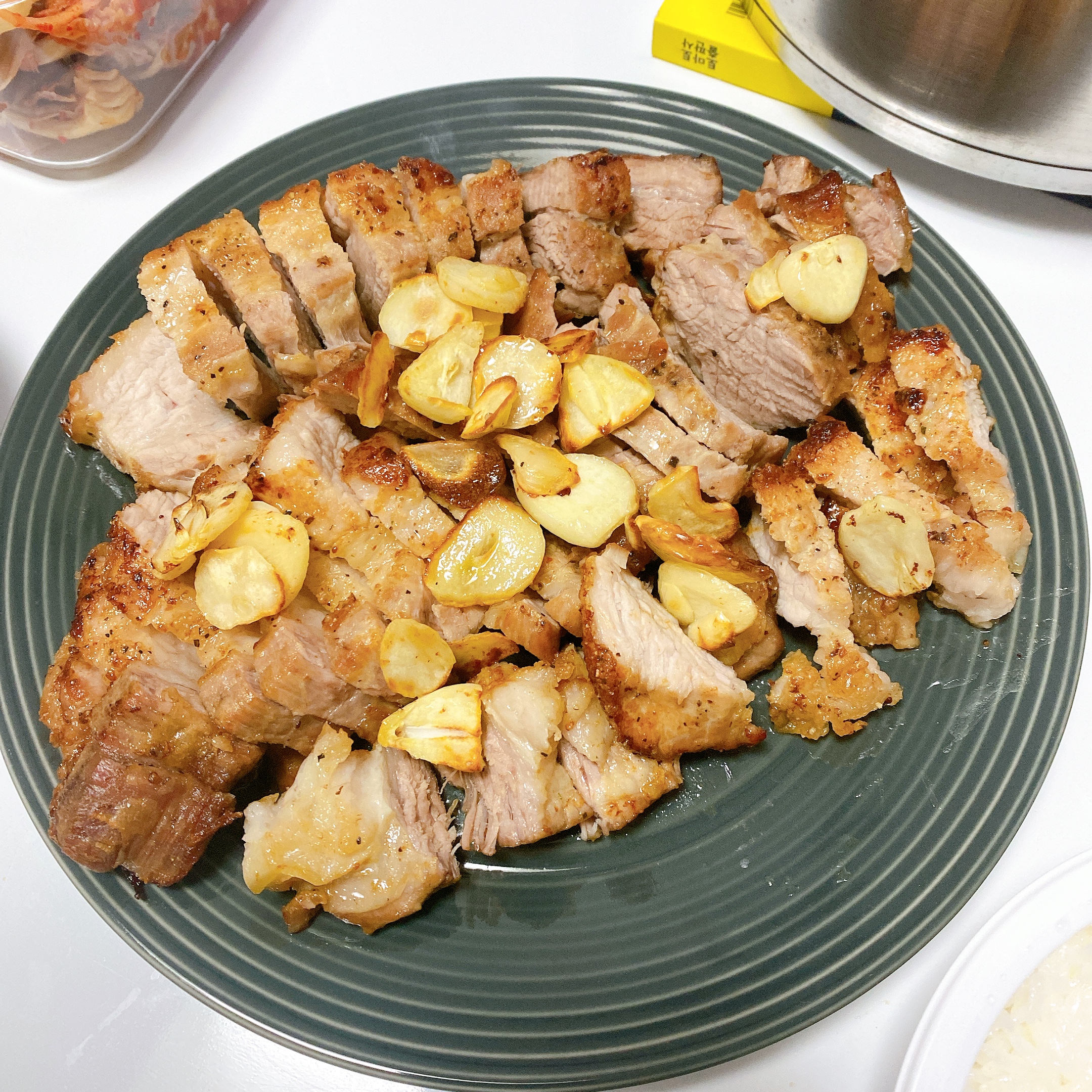 삼겹살 한근을 조리하는데도 공간이 널널하게 남았습니다.