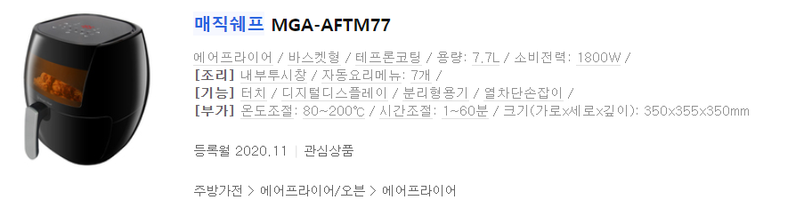 오늘은 매직쉐프 에어프라이어 후기를 남기려고 합니다.